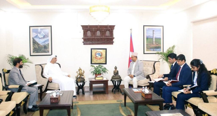 काठमाडौँ-परराष्ट्र मन्त्री श्री शिशिर खनालज्यूले आज परराष्ट्र मन्त्रालयमा संयुक्त अरब इमिरेट्स (UAE) का नेपालस्थित राजदूत महामहिम श्री अब्दुल्ला अल शम्सीसँग शिष्टाचार भेट गर्नुभएको छ।