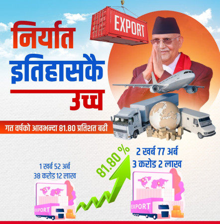 प्रधानमन्त्री केपी शर्मा ओलीले नेपालको निर्यातमा ऐतिहासिक वृद्धि भएको दाबी